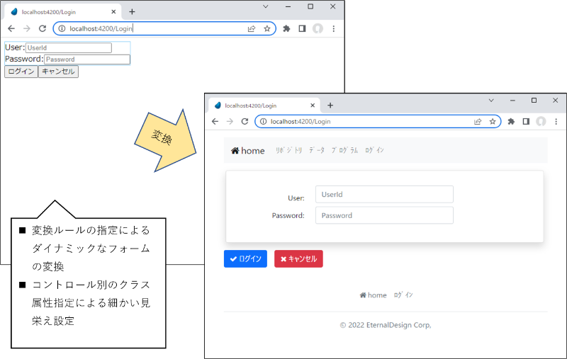 MAGICが出力するAngular ソースは、そのままではデザイン情報を有していないため、何らかのソース編集が必要になります。