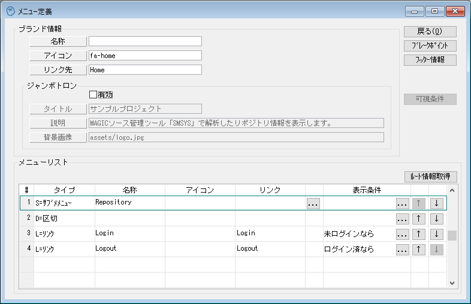 MAGICのルーティング情報(スタートアッププログラムで設定した「ルート」イベントのプログラム)によるメニューの定義が可能です。