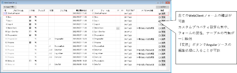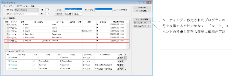 プロジェクト内の全てのフォームをプログラム番号順に確認することが可能です。