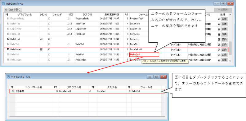 エラーが存在する場合は、画面上でそれを直ちに確認することができます。